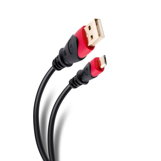 Cable con conector USB-A a micro USB-B, ideal para conectar equipos en espacios pequeños, dispositivos portátiles o cualquier equipo multimedia para sincronización de datos y recarga.