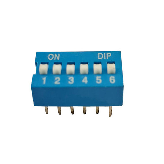 Switch Dip 6 posiciones diseñado para ser utilizado en una placa de circuito impreso junto con otros componentes electrónicos y se utiliza para personalizar el comportamiento de un dispositivo electrónico para situaciones específicas. Un interruptor DIP es un interruptor eléctrico manual en un encapsulado estándar en línea (DIP) y esta formado por un conjunto de pequeños interruptores que se encuentran en muchos equipos y que se puede convertir en la posición ON o OFF. El término puede referirse a cada interruptor individual, o a la unidad como un todo.