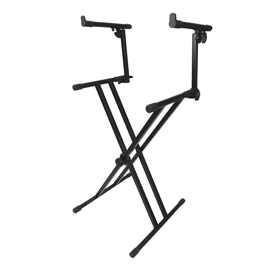 Pedestal tipo tijera de altura ajustable para 2 teclados.