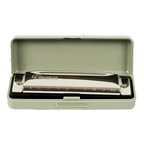 Harmónica Vincenzo Con 10 Orificios, Tono La Color Plata, Con Estuche