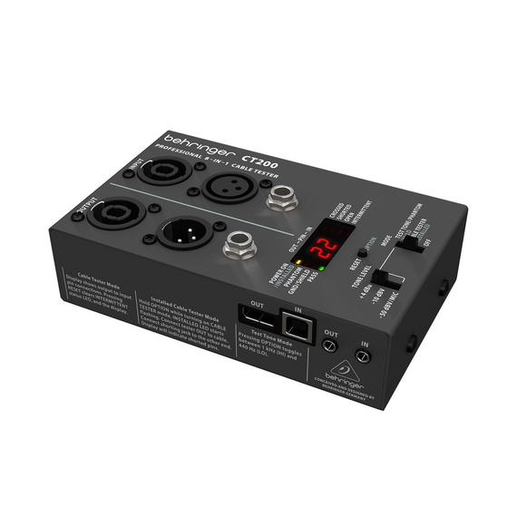 Asegúrate de que todo tu arsenal de cables está en buen estado con el invaluable probador de cables CT200 de Behringer. Esta increíble solución portable es una herramienta imprescindible tanto para músicos como para ingenieros de audio. Este probador acepta todos los tipos de cable que pueden utilizarse en una grabación o en alguna situación en vivo: XLR, Speakon*, TRS (¼”, 1/8″), RCA, RJ45, MIDI y USB. Escoge entre 3 modos de diagnóstico: Test de cable, Prueba de cable instalado o Tono. El CT200 puede checar continuidad, intermitencia o cortos, presencia de phantom y tierra. Debido a que esta práctica herramienta funciona con dos pilas AA, se puede llevar en el bolsillo para poder solucionar cualquier problema en cualquier momento.