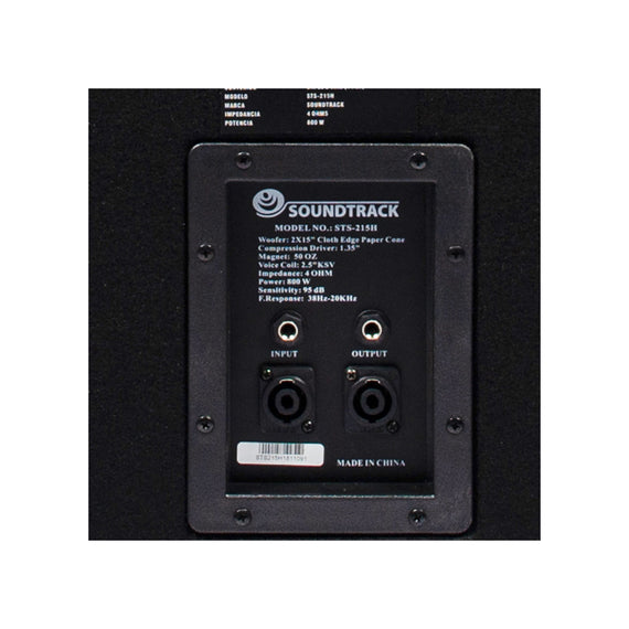 BAFLE 2 x 15" PASIVO DE MADERA, TERMINADO EN FIELTRO 400w RMS SOUNDTRACK STS-215H