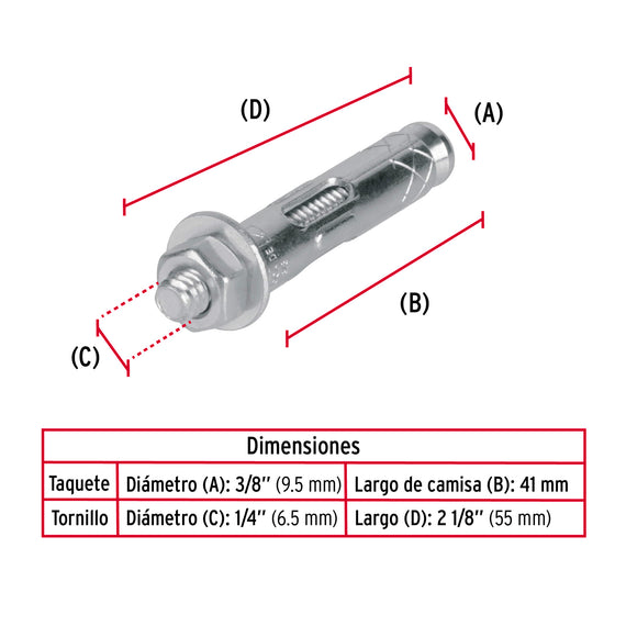Taquete (diámetro x largo camisa) | 3/8" x 41 mm |