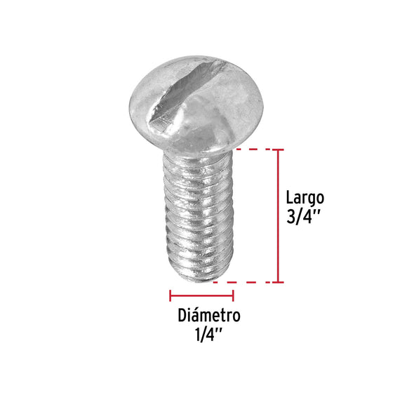 Paq. 15 Pzas. de tornillos 1/4" x 3/4" tipo estufa, fiero TORE-1/4X3/4(15)