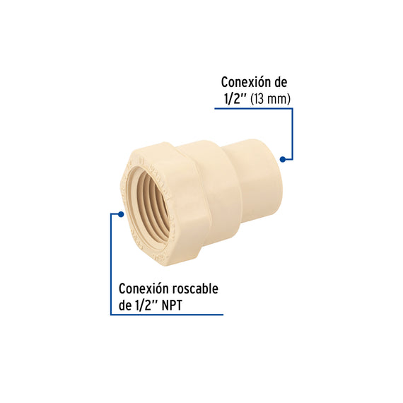 Conector hembra de cpvc 1/2", foset CPVC-601
