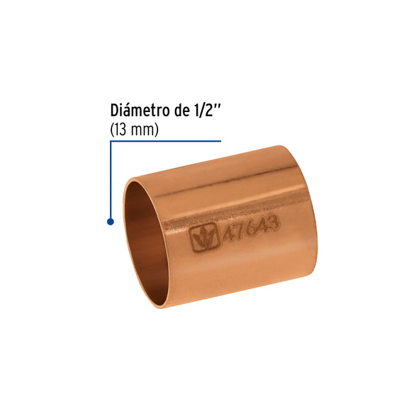 Cople de cobre 1/2", sin ranura, FOSET BASIC