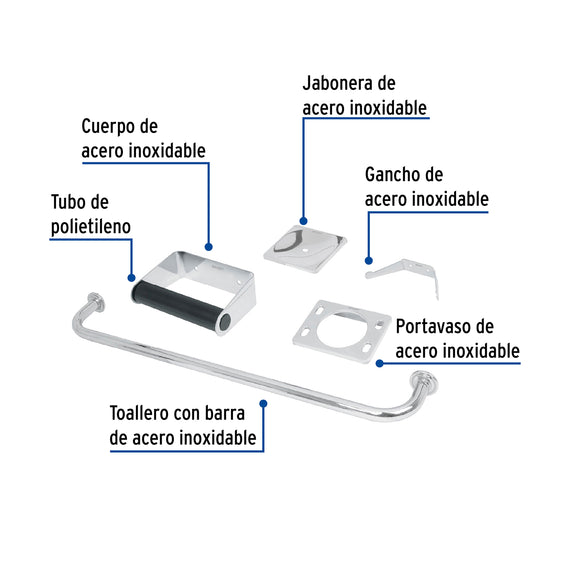 Juego de 5 accesorios para baño de acero inoxidable, Foset