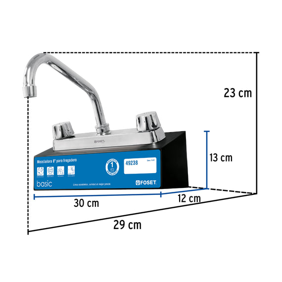 1 Pieza: 49238 (F-317 )Mezcladora para fregadero, manerales hexagonal, corto, Basic
