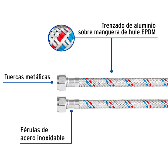 Manguera lavabo/fregadero, aluminio, 1/2"x1/2",100cm, basic FOSET FFR-100P