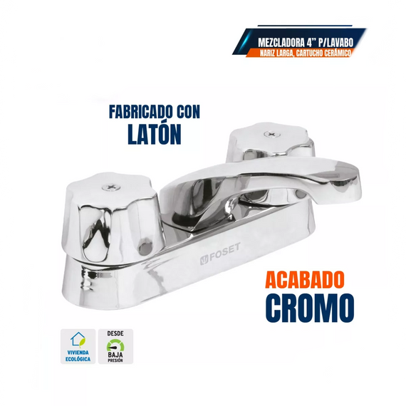 Mezcladora 4" para lavabo, nariz larga, cartucho cerámico FOSET M-048