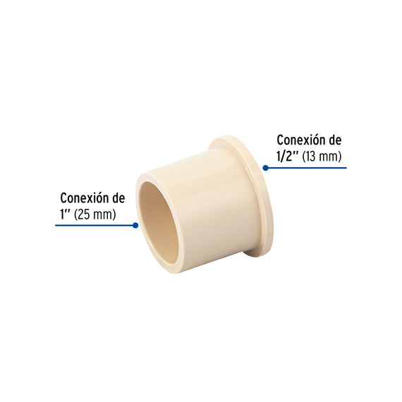 Reducción bushing de cpvc, 1" x 1/2", foset CPVC-232
