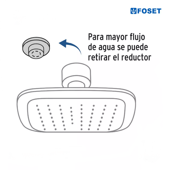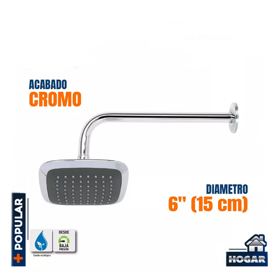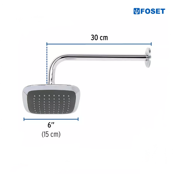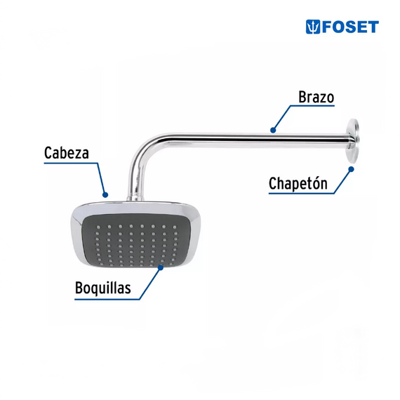 Regadera cuadrada plato ancho 6" brazo inox a muro, Foset