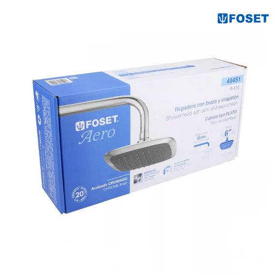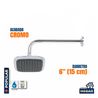 Regadera cuadrada plato ancho 6" brazo inox a muro, aero FOSET R-510