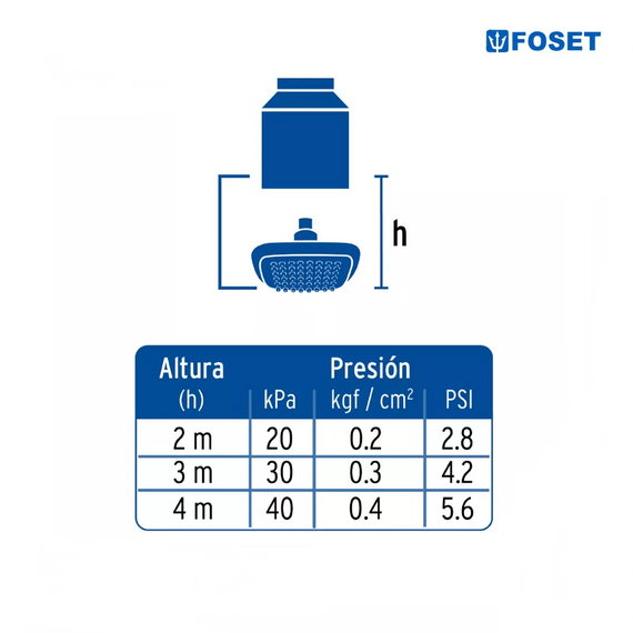 Presión de trabajo 0.25 kgf/cm² a 6 kgf/cm²