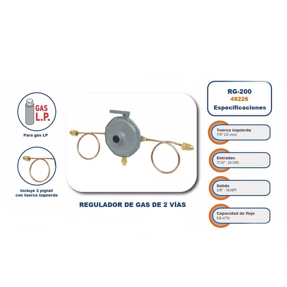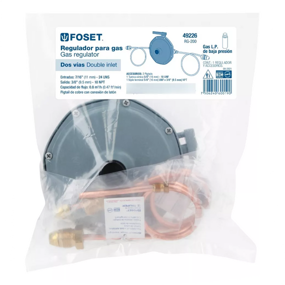 Regulador de gas l.P. De 2 vías, foset RG-200