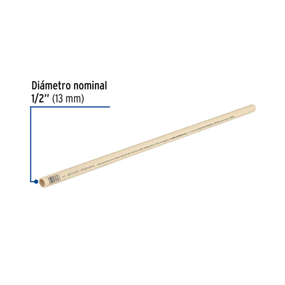 Tubo de 1/2" de cpvc hidráulico rd 13.5 de 3 m, foset CPVC-001