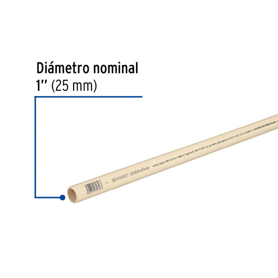 Tubo de 1" de cpvc hidráulico rd 13.5 de 3 m, foset CPVC-003