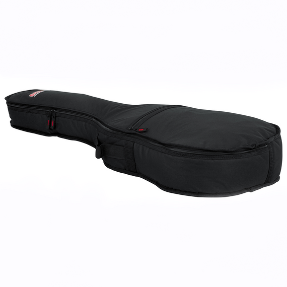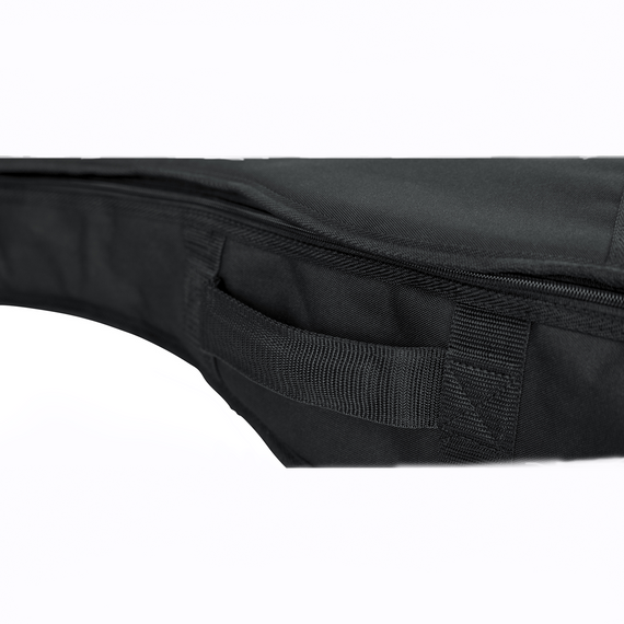 El exterior de nylon es resistente a rasgaduras, arañazos y humedad, mientras que un cierre lateral de arriba hacia abajo de alta resistencia permite una entrada y salida fácil del instrumento. Por dentro, cuenta con 10 mm de relleno de núcleo de espuma, lo que proporciona una protección adicional. Un único bolsillo exterior con cierre proporciona un amplio espacio para tus cuerdas, púes y accesorios favoritos.