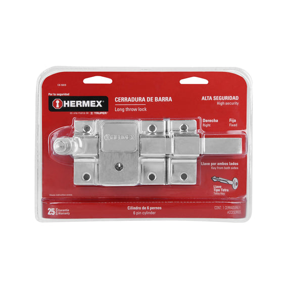 Cerradura de barra fija, llave tetra, derecha, blíster HERMEX CB-50DB
