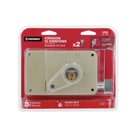 Cerradura sobreponer izq instala-fácil, tradicional, blíster HERMEX CS-75IB