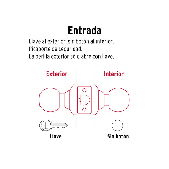 • Cerrojo con llave al exterior, sin botón al interior.