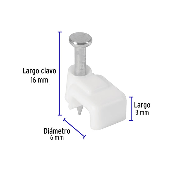 BOLSA CON 20 GRAPAS BLANCAS DE 3 X 6mm PARA CABLE PLANO TRUPER GPL-5B