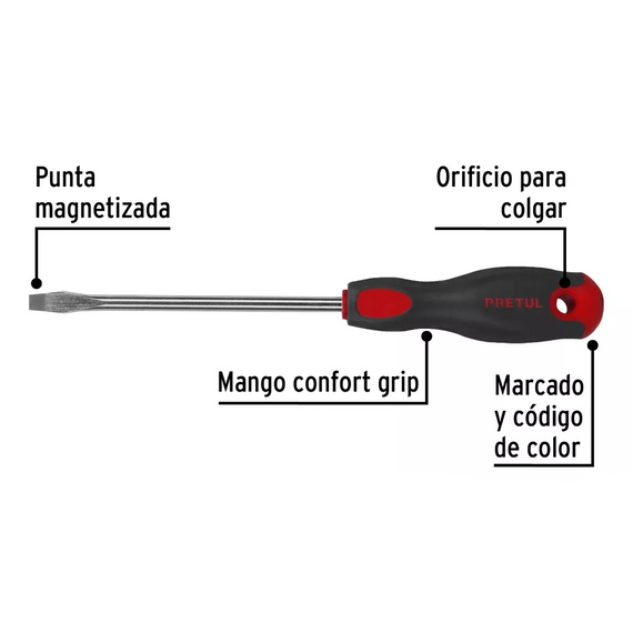 DESARMADOR PLANO, 5/16 X 6", MANGO COMFORT GRIP, PRETUL
