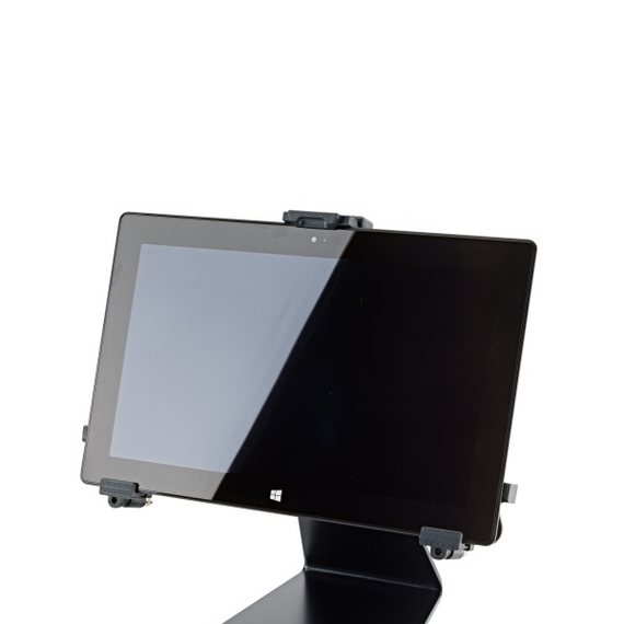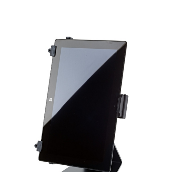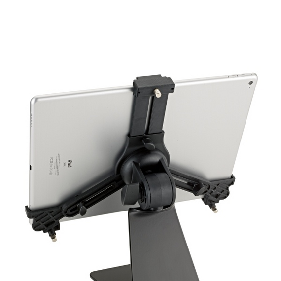 Soporte de mesa estable con soporte universal para tableta para diferentes modelos. Con este soporte de mesa de alta calidad, su tableta siempre estará cerca, en caso de que esté leyendo, navegando por Internet o simplemente viendo videos o mirando imágenes. Los brazos de soporte ajustables individualmente pueden adaptarse al uso de tabletas con una altura de 222 a 334 mm y un ancho de 128 a 232 mm (por ejemplo, iPad, iPad Air, iPad Pro, Amazon Fire HDX 8.9, Samsung Galaxy Tab de 9.7, Google Nexus 9, Asus Transformer o Microsoft Surface, así como Surface Pro). La profundidad de las tabletas puede variar entre 6 y 11 mm. Para el primer uso del soporte para tableta, la configuración de los brazos de soporte se realiza ajustando los tornillos de sujeción al tamaño y profundidad de la tableta. Para otros usos, la tableta se puede conectar y desconectar de forma rápida y sencilla mediante un cierre a presión. El soporte sujetará la tableta de forma segura. Una práctica tuerca de mariposa permite ajustar el ángulo, de modo que cada usuario pueda encontrar fácilmente su posición individual ideal. La tableta puede cambiar entre las posiciones vertical y horizontal. La tableta se mantiene en su lugar, no hay peligro de que la tableta cambie de posición por sí sola.