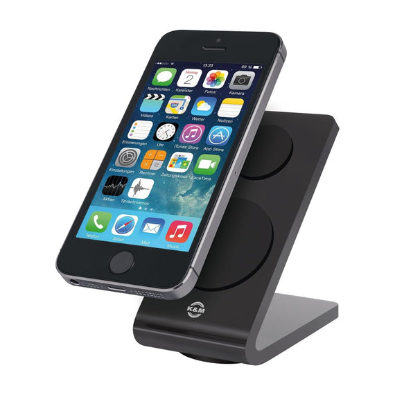 Con este elegante soporte universal hecho de vidrio acrílico negro intenso de alto brillo, su teléfono inteligente ocupa un lugar destacado en su escritorio. Dos almohadillas de agarre mantienen el teléfono inteligente en su lugar (sin adhesivos ni imanes), puede elegir entre la colocación vertical y horizontal. El teléfono inteligente es fácil de colocar y quitar del soporte. Para reactivar las almohadillas de agarre simplemente límpielas con agua. El ángulo de 45 ° permite ver videos y fotos, navegar y escribir. El soporte está equipado con dos almohadillas antideslizantes en la parte inferior del soporte.