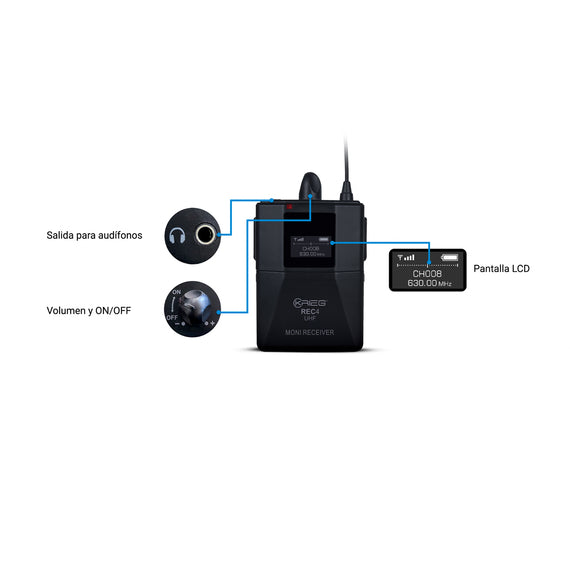 Receptor inalámbrico, bodypack y audífono in ear (610-640 MHz) KRIEG REC-40.