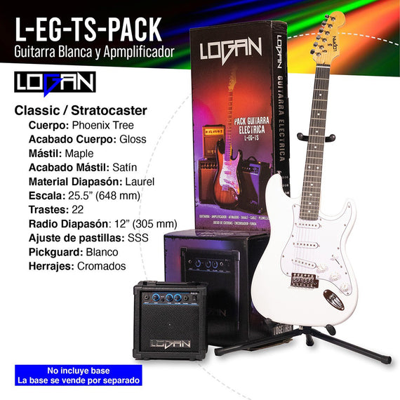 Paq. de Guitarra eléctrica Stratocaster, Blanco LOGAN L-EG-TS-PAQ-WH