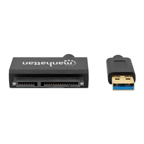 Conecte una unidad SATA 2.5" a un puerto USB 3.0 SuperSpeed para una rápida y sencilla transferencia de datos, respaldo y almacenamiento. Comparta, almacene y archive información importantes de una manera rápida.El adaptador Manhattan de USB SuperSpeed a SATA conecta discos duros SATA a computadoras portátiles y de escritorio utilizando un puerto USB 3.0. Transferencia y compartir archivos entre computadoras de escritorio y portátiles, respaldar archivos o almacenar grandes carpetas en unidades externas es más rápido y fácil de lograr. Su compatibilidad con todos los discos duros de 2.5" hace de esta una herrameinta versátil para usuarios domésticos y profesionales.Ajustable para uso profesional o en casaCon una creciente necesidad por la seguridad y recuperación de la información, el adaptador de USB SuperSpeed a SATA ayuda a copiar o transferir grandes cantidades de datos desde el disco duro de su PC y viceversa. Fácil de instalar y usar, sus características plug-and-play y ser fácil de intercambiar ayuda a brindar un metodo conveniente para transferir y almacenar datos.