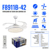 Ventilador con Aspas más grandes. Material de excelente calidad. Iluminación LED. 4 aspas retráctiles. - 4 Aspas Retráctiles de acrílico transparentes - Luz blanca fría - Temperatura de color: 6500K - 3 Niveles de Velocidades - Diámetro 42” pulgadas - Horas de vida: 50 000h - Características eléctricas: 127V 40W - Consumo máximo combinado: 88W - Medidas empaque: 55 x 55 x 30 cm - CRI: 80