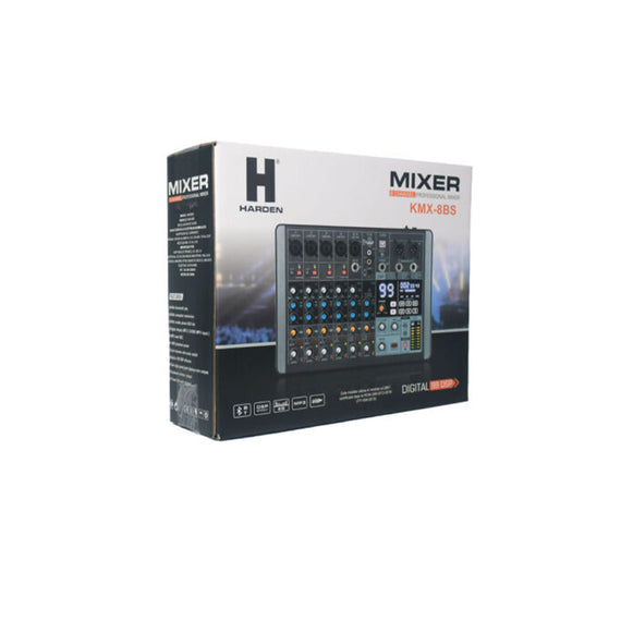 Mezcladora HARDEN Pasiva 8 Canales XLR/6.3, Phantom 48V, USB/SD, 99 Efectos DSP, Grabación por USB, Interfaz PC Con reproducción bluetooth.