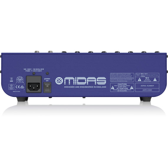 MEZCLADORA ANÁLOGA 12 CANALES (8 DIRECTOS 4 COMPARTIDOS) PARA AUDIO EN VIVO Y GRABACIÓN EN ESTUDIO, CON PREAMPS MIDAS DM12