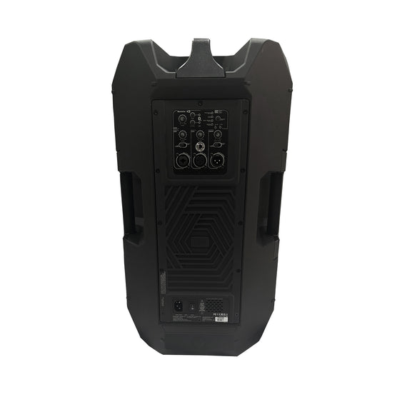 El gabinete bass-reflex está equipado con un woofer de 12” y un controlador de compresión de 1,35” potenciado por un módulo amplificador de clase D de 1200 W.