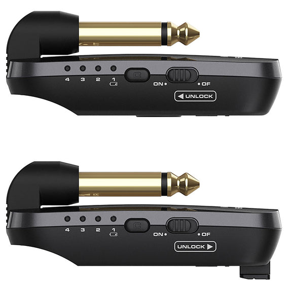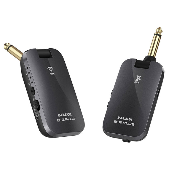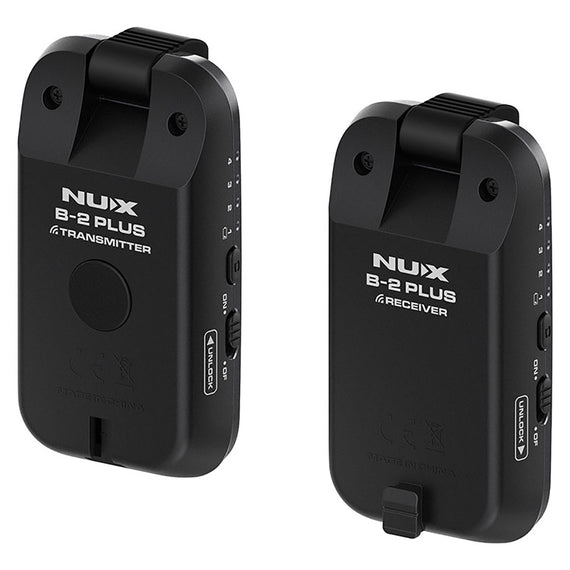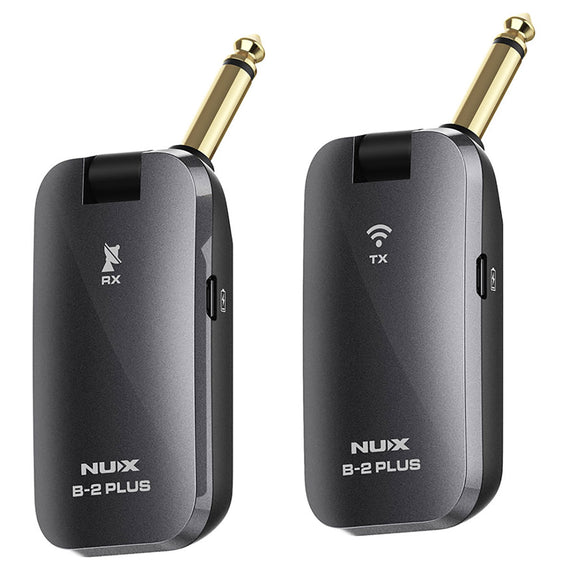 El NUX B-2 PLUS es un sistema inalámbrico de bolsillo de 2.4 GHz que ofrece a los guitarristas una solución fácil para pasar a la tecnología inalámbrica. Utiliza el algoritmo de transmisión inalámbrica NUX, B-2 PLUS asegura una mejor conexión en un entorno de RF ruidoso. Con la función de apagado automático recién agregada, nunca tendrás que preocuparte por dejar el sistema encendido y agotar las baterías. Cuenta con latencia ultra baja y un rango operativo comparable. NUX B-2 PLUS ofrece una calidad de audio de alta definición de 32 bits / 44 kHz y tiene un rango operativo comparable de 18 metros (línea de sitio) con menos de 5 ms de latencia. Difícilmente podrás encontrar algo mejor dentro del mismo rango de precio. Los productos que utilizan la banda de frecuencia de 2,4 GHz están en todas partes hoy en día, es fundamental encontrar una forma que pueda evitar la mayoría de las interferencias no deseadas. En lugar de aumentar la potencia de transmisión, decidimos reducir el ancho de banda a 2 Mb para que B-2 PLUS pueda encontrar la banda más disponible. Es como conducir una motocicleta por una carretera llena de gente. Cuenta con operación plug and play y 4 canales opcionales. Conecta el transmisor a tu guitarra, conecta el receptor a tu amplificador o pedal de efectos, enciende el transmisor y el receptor y todo estará listo. También puedes aprovechar sus cuatro canales opcionales cuando toques con tus amigos. Se pueden usar hasta cuatro B-2 PLUS al mismo tiempo en un espacio. Cuenta con un diseño inteligente y amigable con la guitarra. B-2 está diseñado para ser compatible con las guitarras más populares. Puedes configurar el conector del transmisor de dos maneras: Mirando hacia abajo para encajar las entradas empotradas montadas en la parte superior como Stratocasters o mirando hasta otras direcciones requeridas para entradas no empotradas como el estilo clásico de Les Paul. Ofrece un diseño de hebilla de lengüeta fácil de llevar y mantener y ranura para ayudar a evitar perder el transmisor/receptor. Abróchalos cuando no estés tocando la guitarra.