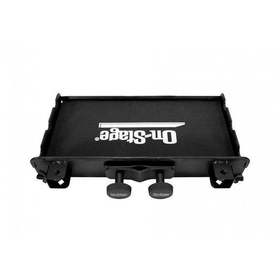 Confiable y fácil de instalar, nuestra bandeja de percusión DPT4000 mantiene un arsenal de instrumentos y accesorios de percusión manual organizados y convenientemente al alcance. Además de contener elementos de mano, la bandeja proporciona dos soportes para montar varillas de percusión que sostienen cencerros, bloques de madera u otros instrumentos en la posición de ejecución. El acolchado de espuma en la plataforma ayuda a mantener los instrumentos en su lugar y también permite la colocación silenciosa de maracas y otros instrumentos durante la interpretación. Los reposamanos en dos lados de la bandeja facilitan el agarre de baquetas, mazos e instrumentos como maracas, cabasas y claves sin tocar la bandeja. Dos ganchos giratorios se abren desde la parte inferior de la bandeja para almacenar elementos colgantes, como panderetas, cables y auriculares. Dos mecanismos de montaje permiten utilizar una variedad de equipos de escenario y estudio para sostener la bandeja. Un zócalo roscado integrado se puede atornillar en cualquier soporte de micrófono estándar. Alternativamente, las abrazaderas integradas se pueden unir a cualquier poste resistente, incluidos soportes de charles, soportes de micrófono y soportes de altavoz. Para un montaje y desmontaje eficientes, el estuche blando incluido almacena y transporta la bandeja con los instrumentos, sin necesidad de una bolsa de instrumentos separada. Para facilitar el transporte, el estuche blando cuenta con asas y una correa para el hombro, así como un bolsillo con cremallera para guardar herramientas y suministros.