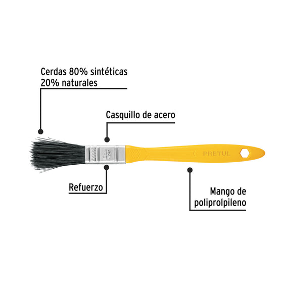Cerdas finas 80% sintéticas y 20% naturales para mayor retención de pintura y acabado uniforme