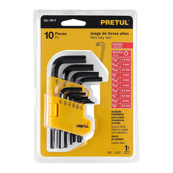 Juego 10 llaves allen std punta hex con organizador, pretul ALL-10P-P