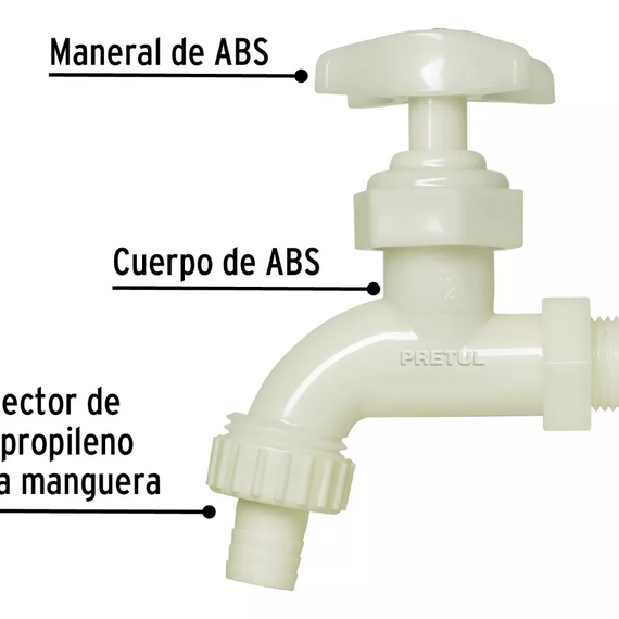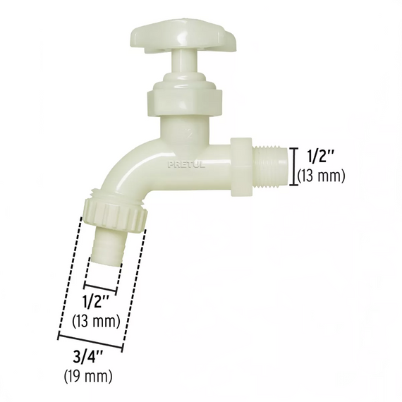 Llave para manguera, de plástico 65 g, entrada 1/2", Pretul
