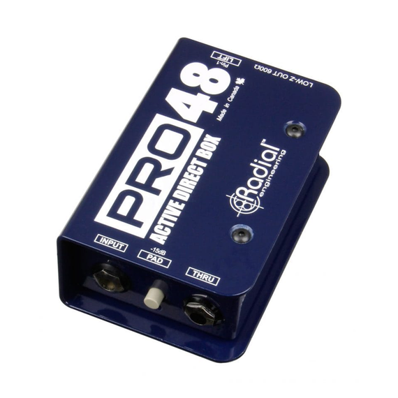 La innovadora fuente de alimentación conmutada interna del Pro48 aumenta significativamente el espacio libre produciendo menos distorsión y al mismo tiempo produce una respuesta lineal y suave que se extiende desde 20 Hz hasta muy por encima de 40 kHz. Esto da como resultado una señal natural e incolora que es tan buena o mejor que las cajas DI que cuestan varias veces más. El rendimiento superior convierte al Pro48 en un candidato ideal para usar con bajos activos y guitarras acústicas alimentados por baterías que tienden a sobrecargar otras cajas directas.