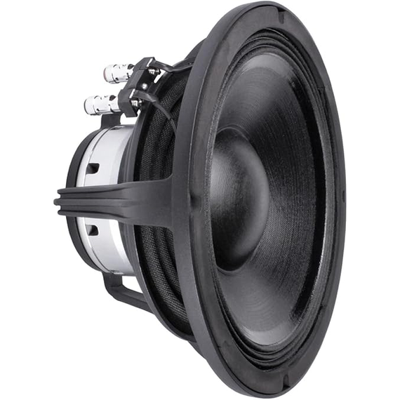 Parámetros técnicos Impedancia nominal: 8 ohmios Impedancia mínima: 7.3 ohmios AES Power Handling (1): 700 W Manejo de potencia máxima (2): 1400 W Sensibilidad (1W/1m): 96 dB Rango de frecuencia: 60÷2500 Hz Diámetro de bobina de voz: 10mm (4 mm (4 Material de bobinado: Al Material anterior: fibra de vidrio || Profundidad de bobinado: 22 mm.