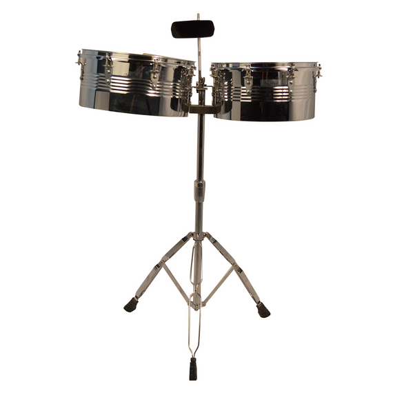 Los timbales New Beat son instrumentos realizados para trabajar fuerte, son resistentes y están diseñados para producir el sonido tradicional de la música latina. Fabricado con acero y con terminado en cromo. Vaso corto de 6” pulgadas y montado sobre un resistente atril de doble solera. Viene listo para tocar, incluye un par de baquetas, llave para afinar y un cencerro con su base.