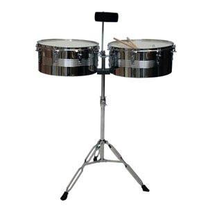 Los timbales New Beat son instrumentos realizados para trabajar fuerte, son resistentes y están diseñados para producir el sonido tradicional de la música latina. Fabricado con acero y con terminado en cromo. Vaso largo y montado sobre un resistente atril de doble solera. Incluye un par de baquetas, llave para afinar y un cencerro con base.
