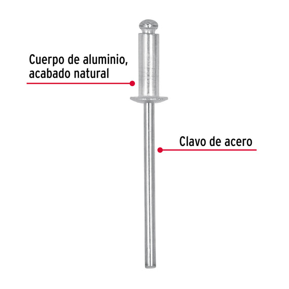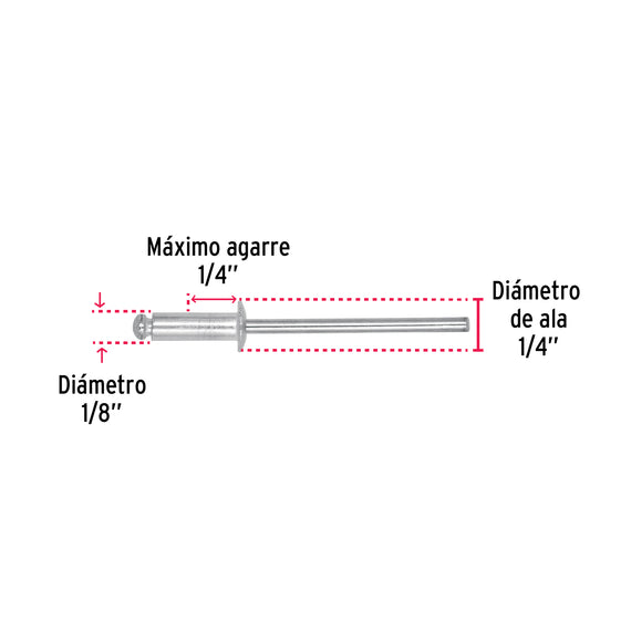 Bolsa con 50 remaches 1/8" x 1/4" de aluminio, ala 1/4" TRUPER R-44B