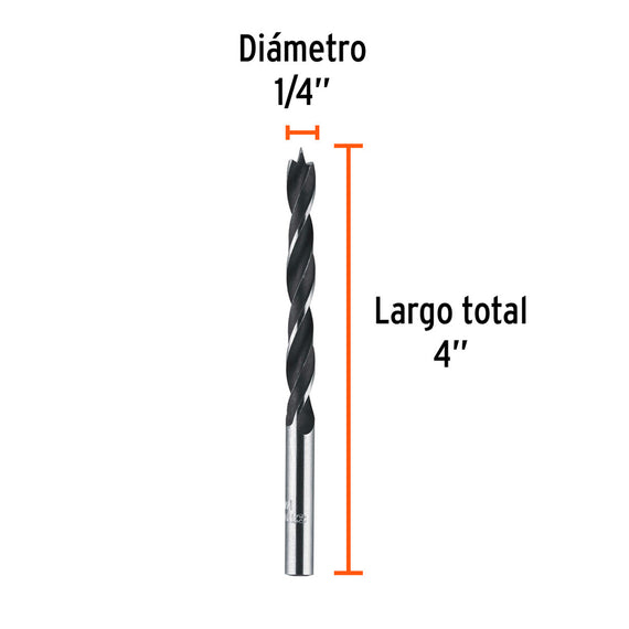 Broca con punta centradora para madera 1/4", truper BM-1/4