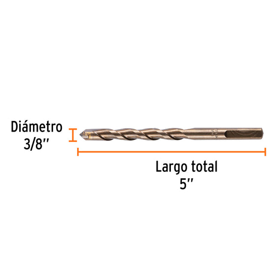Broca para concreto de 3/8 x 5" en blíster, truper BCT-3/8X5-B