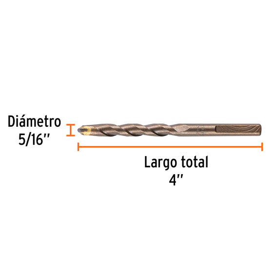 Broca para concreto de 5/16 x 4" en blíster