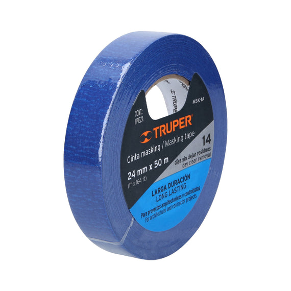 Cinta masking tape azul de 1"x50m para pintor truper MSK-1A